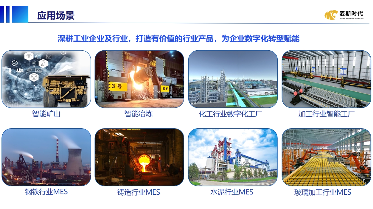 麥斯時(shí)代致力于為冶煉、礦山、糧油、汽車(chē)、醫(yī)藥、軍工和電子等多個(gè)行業(yè)客戶(hù)提供服務(wù), 已為70多家企業(yè)成功實(shí)施150多個(gè)項(xiàng)目,助力企業(yè)實(shí)現(xiàn)數(shù)字化轉(zhuǎn)型和智能化升級(jí)。