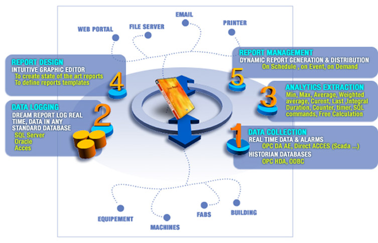 基于新技術(shù),Dream Report通過(guò)80多種不同的數(shù)據(jù)接口驅(qū)動(dòng)程序?qū)崿F(xiàn)了與自動(dòng)化系統(tǒng)和設(shè)備(如建筑物、工廠等)的輕松連接,其免編程、界面友好、標(biāo)準(zhǔn)化報(bào)表模板和強(qiáng)大的數(shù)據(jù)分析能力,無(wú)論是交互式報(bào)表、還是性能和效率儀表盤報(bào)表,甚至符合FDA 21CFRPart11要求的生物制藥報(bào)表,均可輕松實(shí)現(xiàn)。Dream Report成為控制工程師實(shí)現(xiàn)自動(dòng)化報(bào)表的理想選擇。