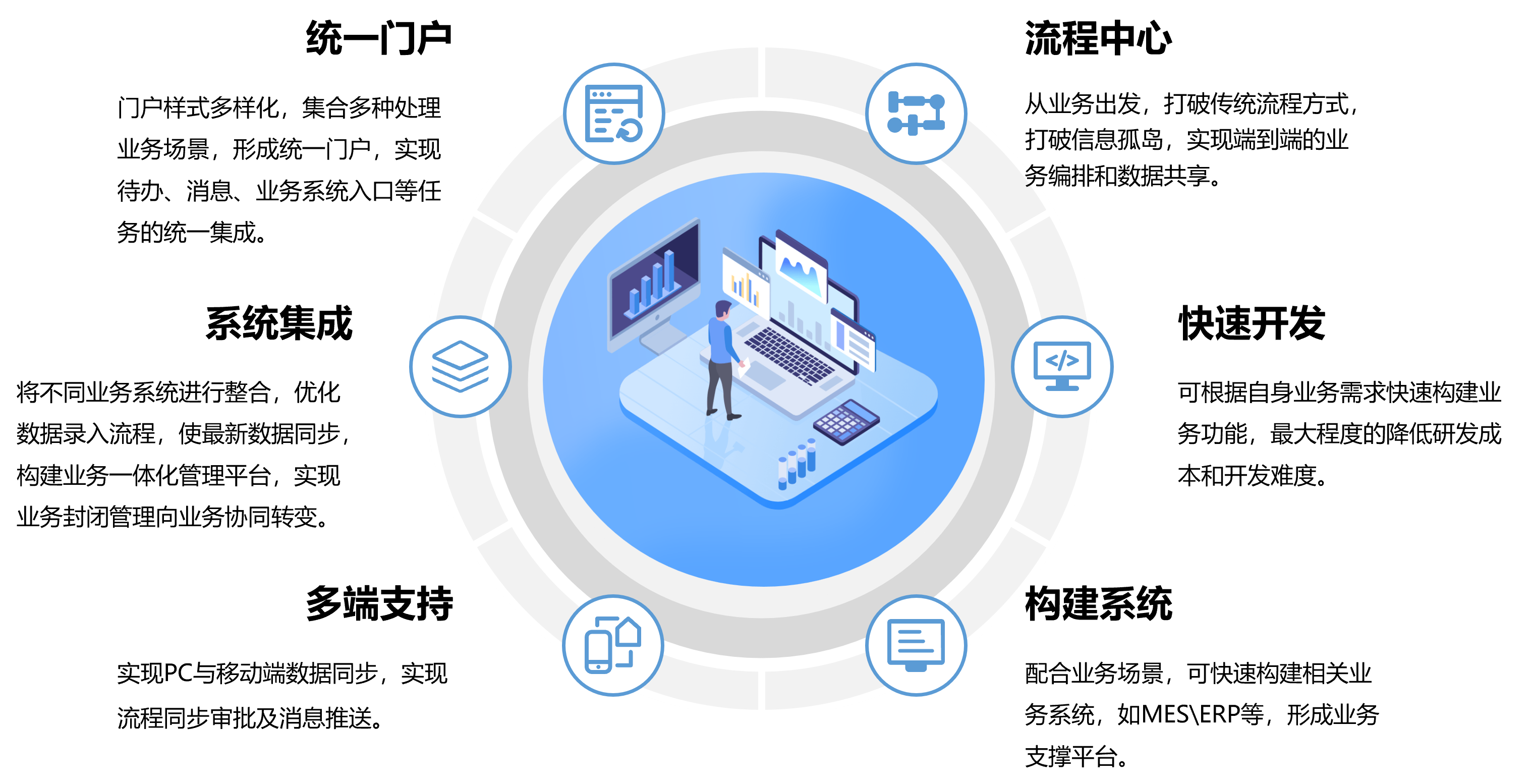 低代碼開(kāi)發(fā)平臺(tái)助力企業(yè)高效化、便捷化的構(gòu)建企業(yè)各種應(yīng)用系統(tǒng),提供一站式的技術(shù)服務(wù)與支撐,提升整個(gè)項(xiàng)目或系統(tǒng)開(kāi)發(fā)效率,縮短整體的實(shí)施周期,為企業(yè)的降本增效提供保障。
