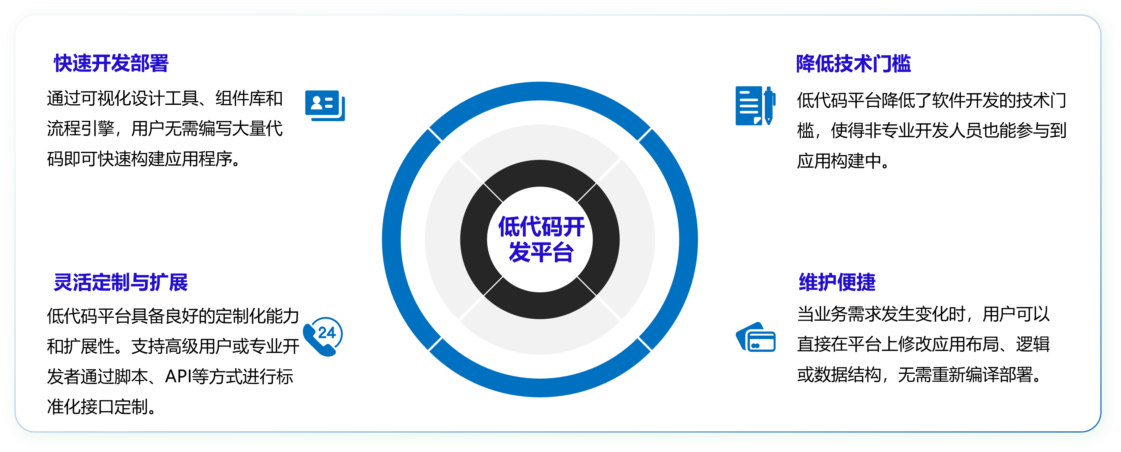 低代碼開(kāi)發(fā)平臺(tái)作為一種創(chuàng)新技術(shù)工具,用戶(hù)通過(guò)少量代碼就可以快速構(gòu)建出各種應(yīng)用系統(tǒng)。平臺(tái)正以其快速開(kāi)發(fā)、低門(mén)檻參與和靈活定制等特性,重塑企業(yè)數(shù)字化轉(zhuǎn)型之路。