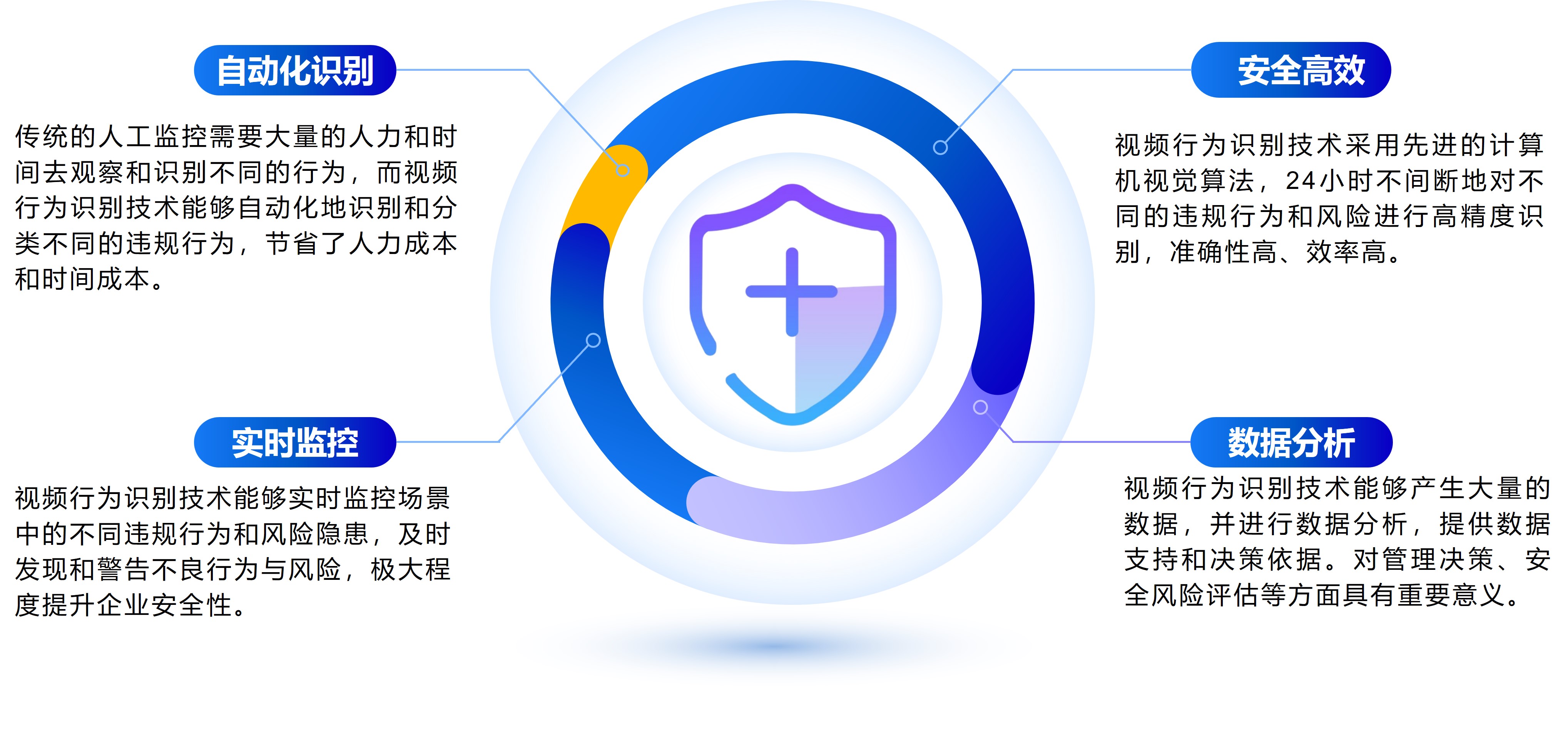基于AI視頻分析技術(shù),構(gòu)建企業(yè)智能化視頻分析系統(tǒng),為企業(yè)的安全預(yù)防提供技術(shù)手段與保障,高效、穩(wěn)定的為企業(yè)的安全防控提供支撐,避免企業(yè)安全事故的發(fā)生,提升企業(yè)的安全管控與防控能力。